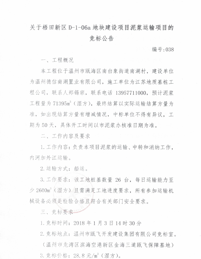 ¹ØÓÚÎÂÖÝÊÐÄÏÌÁ±±Èë¿Úˢй¤³ÌÄཬÔËÊäÏîÄ¿µÄ¾º±êͨ¸æ