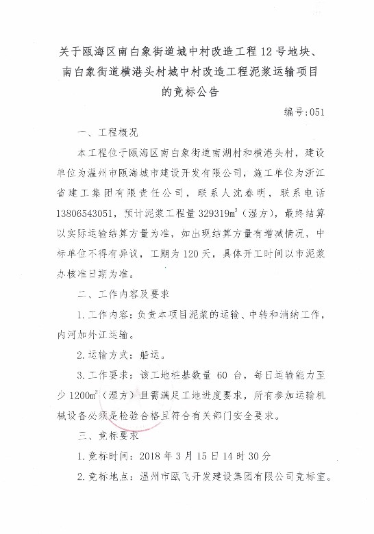 ¹ØÓÚ걺£ÇøÄϰ×Ïó½ÖµÀ³ÇÖдåˢй¤³Ì12ºÅµØ¿é¡¢Äϰ×Ïó½ÖµÀºá¸ÛÍ·´å³ÇÖдåˢй¤³ÌÄཬÔËÊäÏîÄ¿µÄ¾º±ê¹«Ê¾