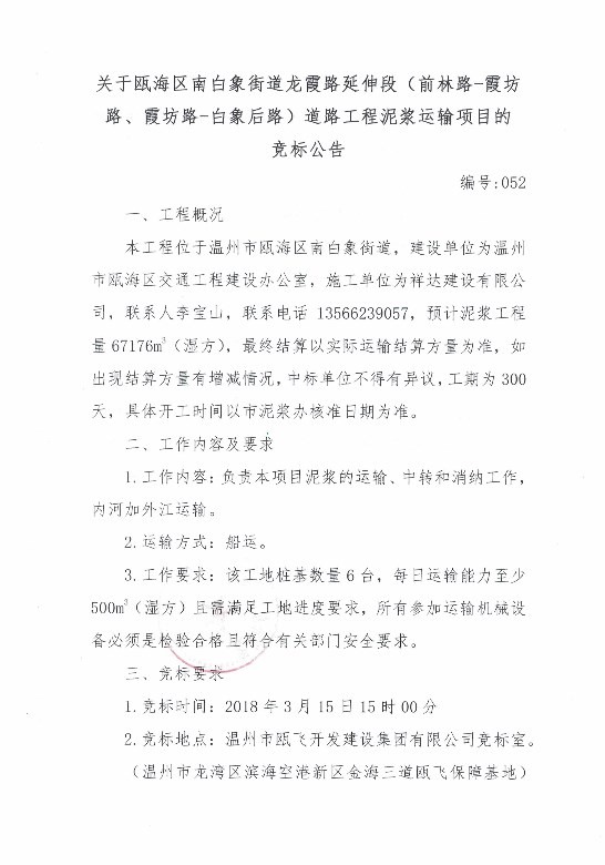 ¹ØÓÚ걺£ÇøÄϰ×Ïó½ÖµÀ³ÇÖдåˢй¤³Ì12ºÅµØ¿é¡¢Äϰ×Ïó½ÖµÀºá¸ÛÍ·´å³ÇÖдåˢй¤³ÌÄཬÔËÊäÏîÄ¿µÄ¾º±ê¹«Ê¾
