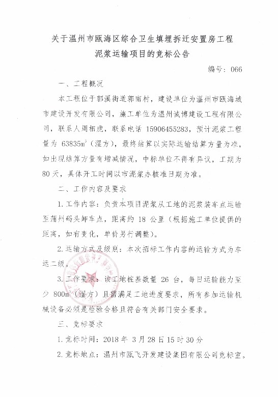 ¹ØÓÚÎÂÖÝÊÐ걺£Çø×ÛºÏÎÀÉúÌîÂñ²ðǨ°²¶Ù·¿¹¤³ÌÄཬÔËÊäÏîÄ¿µÄ¾º±êͨ¸æ
