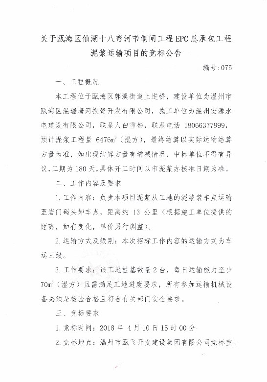 ¹ØÓÚ걺£ÇøÏɺþÊ®°ËÍäºÓ¿ØÖÆÕ¢¹¤³ÌEPC×ܳаü¹¤³ÌÄཬÔËÊäÏîÄ¿µÄ¾º±êͨ¸æ