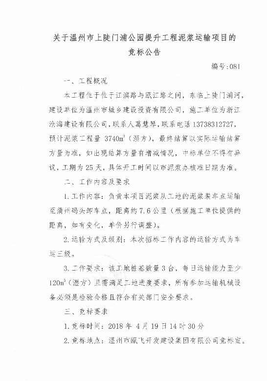 ¹ØÓÚÎÂÖÝÊÐÉ϶¸ÃÅÆÖ¹«Ô°ÌáÉý¹¤³ÌÄཬÔËÊäÏîÄ¿µÄ¾º±êͨ¸æ