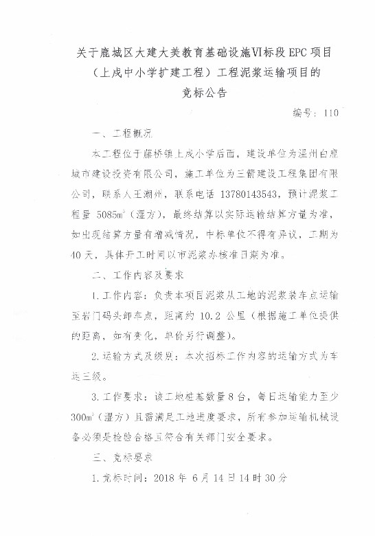 ¹ØÓÚ¹³ÇÇø´ó½¨´óÃÀ½ÌÓý»ù´¡ÉèÊ©V±ê¶ÎEPCÏîÄ¿£¨ÎÂÖÝÊеÚÈýÊ®ËÄÖÐѧ£©ÄཬÔËÊäÏîÄ¿µÄ¾º±êͨ¸æ