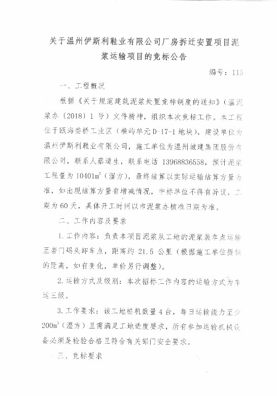 ¹ØÓÚÎÂÖÝÒÁ˹ÀûЬҵÓÐÏÞ¹«Ë¾³§·¿²ðǨ°²¶ÙÏîÄ¿ÄཬÔËÊäÏîÄ¿µÄ¾º±êͨ¸æ
