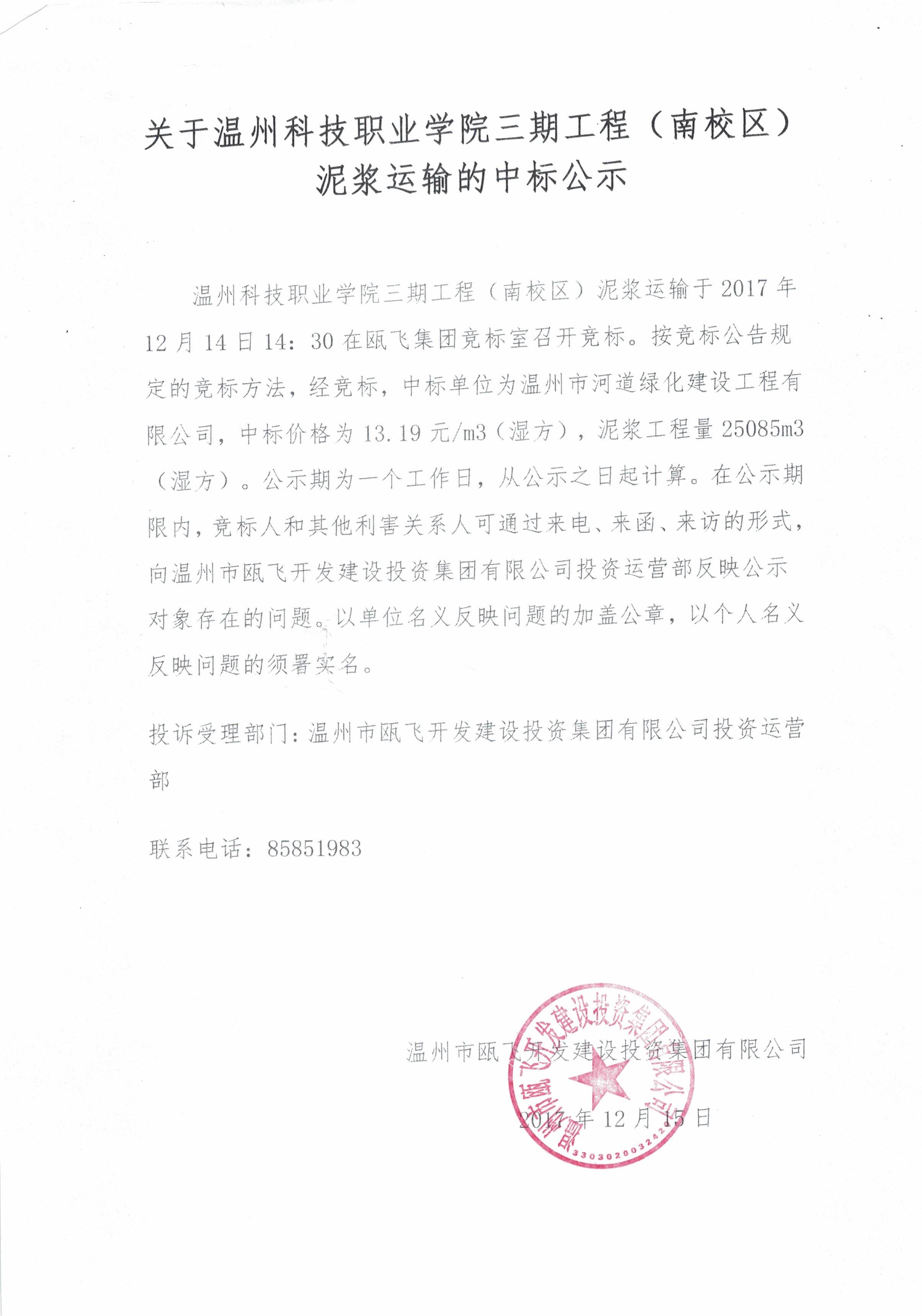 ¹ØÓÚÎÂÖݿƼ¼Ö°ÒµÑ§ÔºÈýÆÚ¹¤³Ì£¨ÄÏÐ£Çø£©ÄཬÔËÊäµÄÖб깫ʾ.jpg