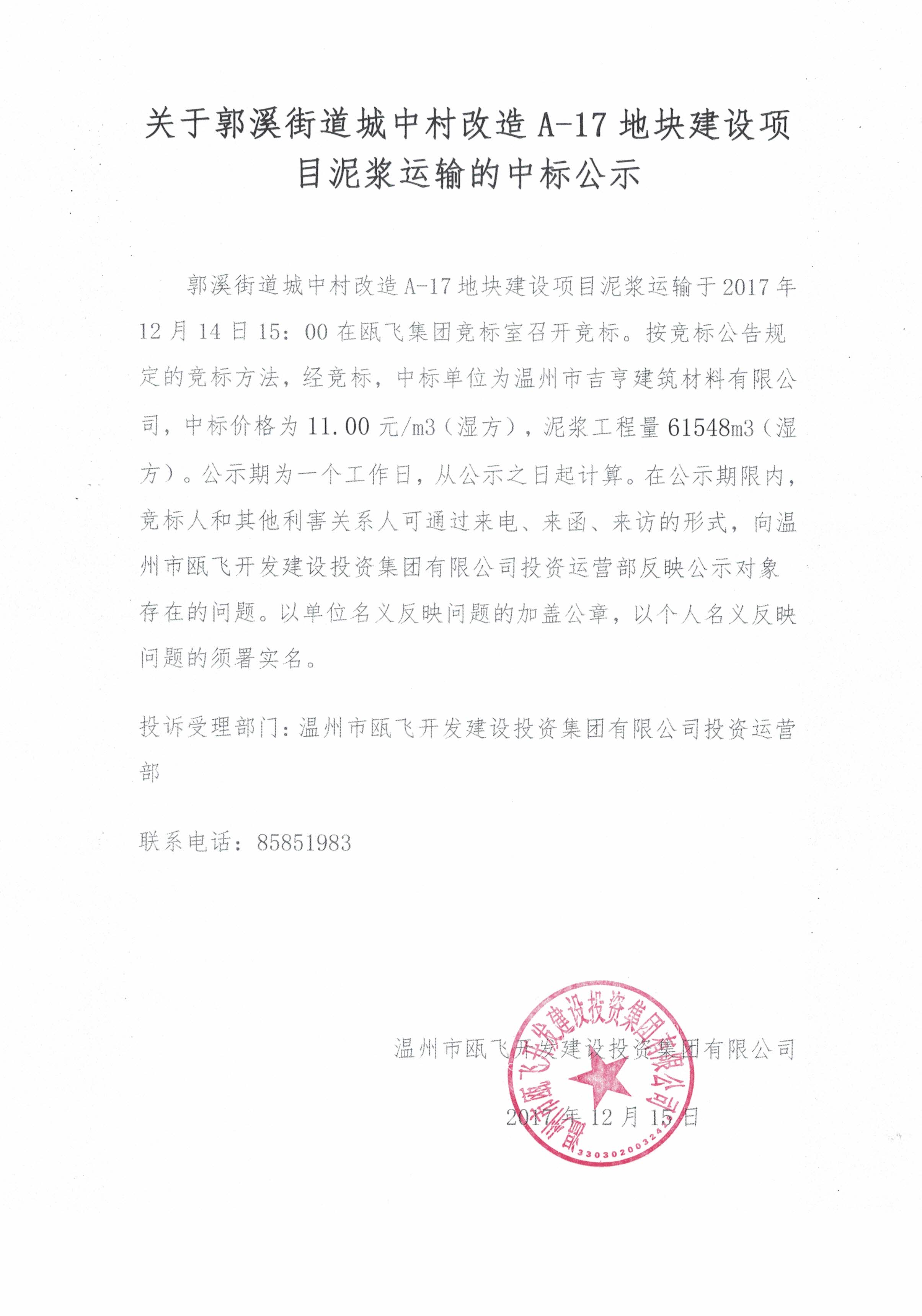 ¹ØÓÚ¹ùϪ½ÖµÀ³ÇÖдåË¢ÐÂA-17µØ¿é½¨ÉèÏîÄ¿ÄཬÔËÊäµÄÖб깫ʾ